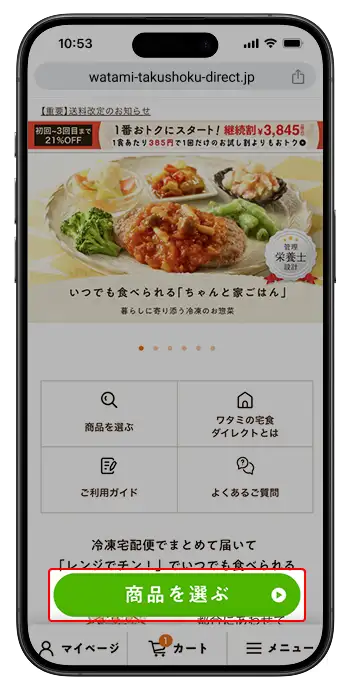 【商品を選ぶ】を押し、セット内容選択画面にて、お好きなメニューを選択してください。