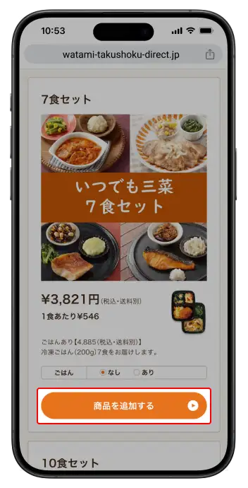 「商品を追加/商品を変更する」ページが表示されるので、下にスクロールしてお好みの商品を選択して【追加】を押してください。