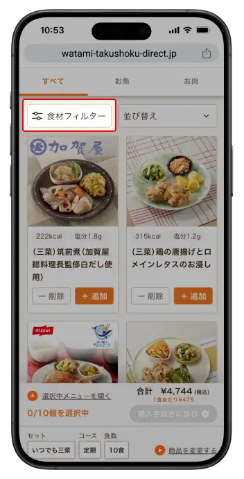 ※苦手な食材がある方は[食材フィルター]から、該当の食材をチェックしてください。step 03 ご購入手続き