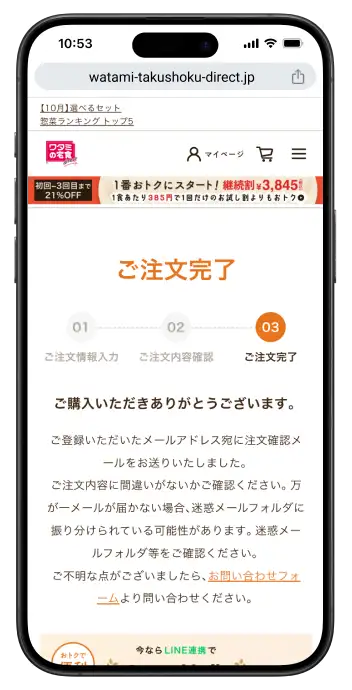 この画面が表示されたらご注文完了です。商品到着までお待ちください。
