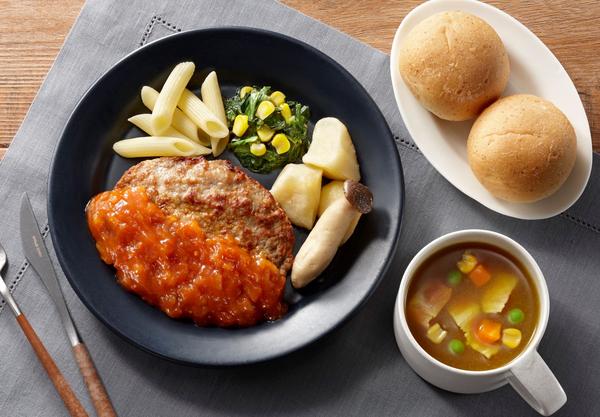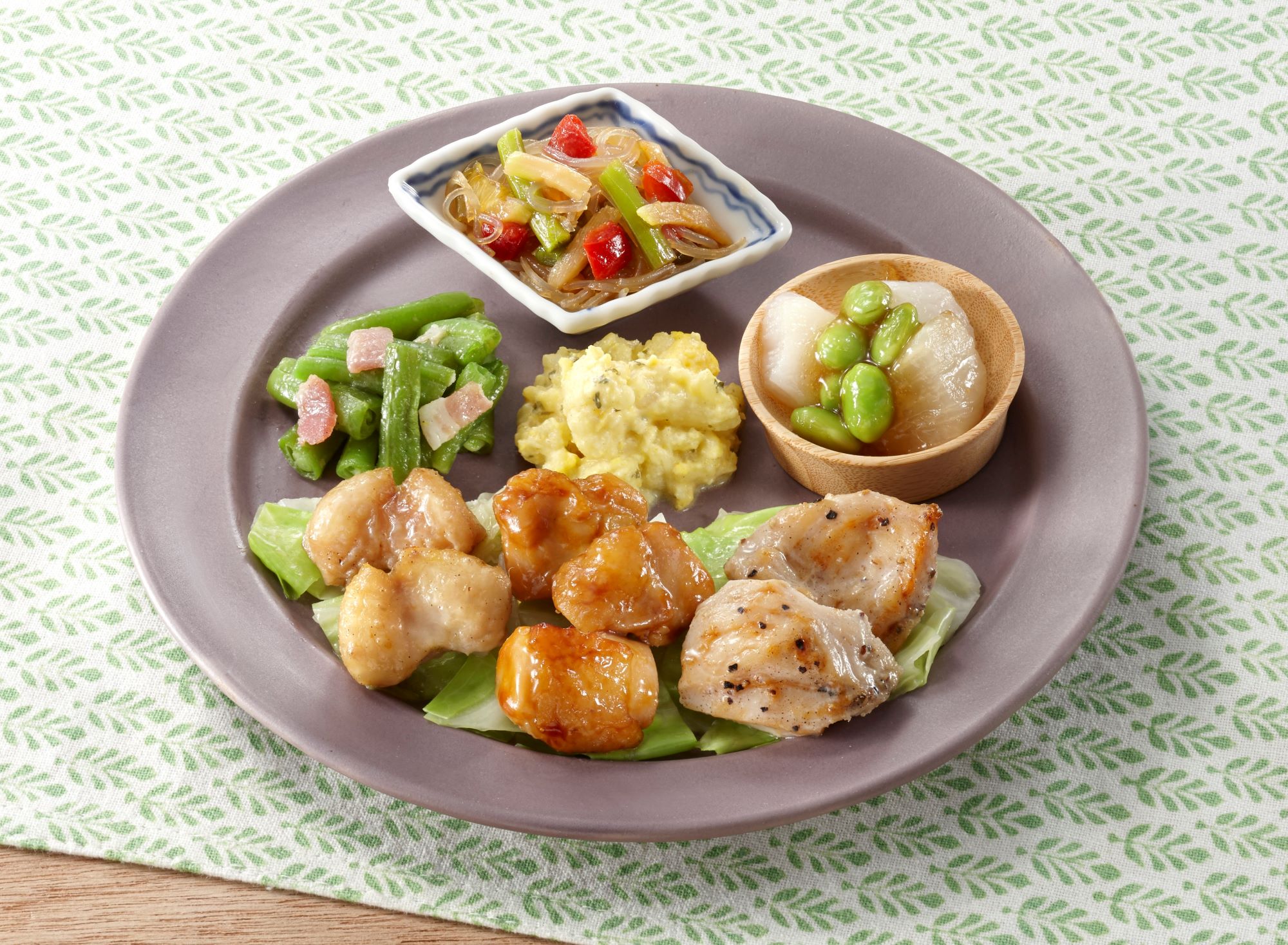いつでもシリーズで販売している人気メニューの主菜を使用し、ボリュームをプラス。
