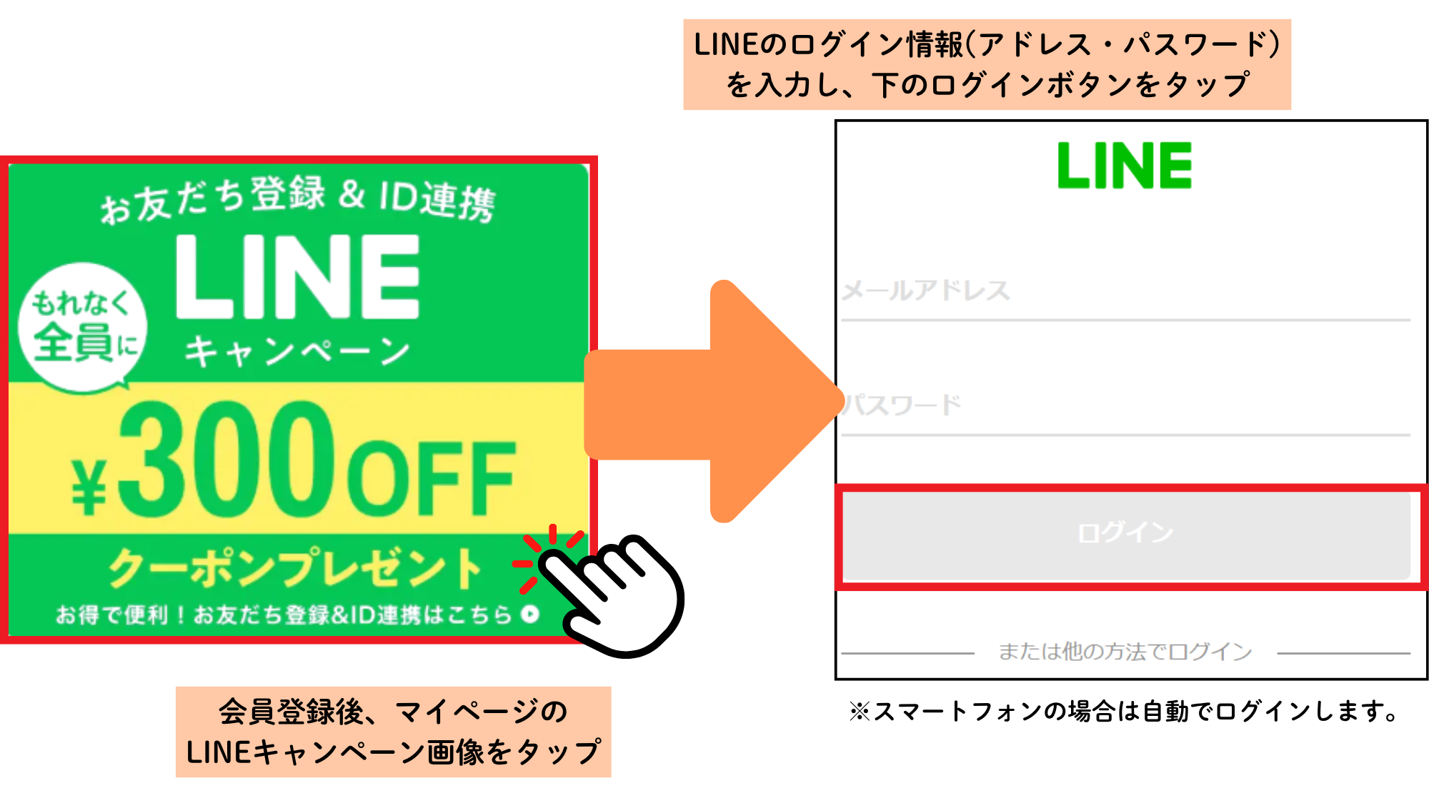 今ならご登録いただきLINE ID連携を行っていただくと、もれなく 300円分のクーポン をプレゼント!
