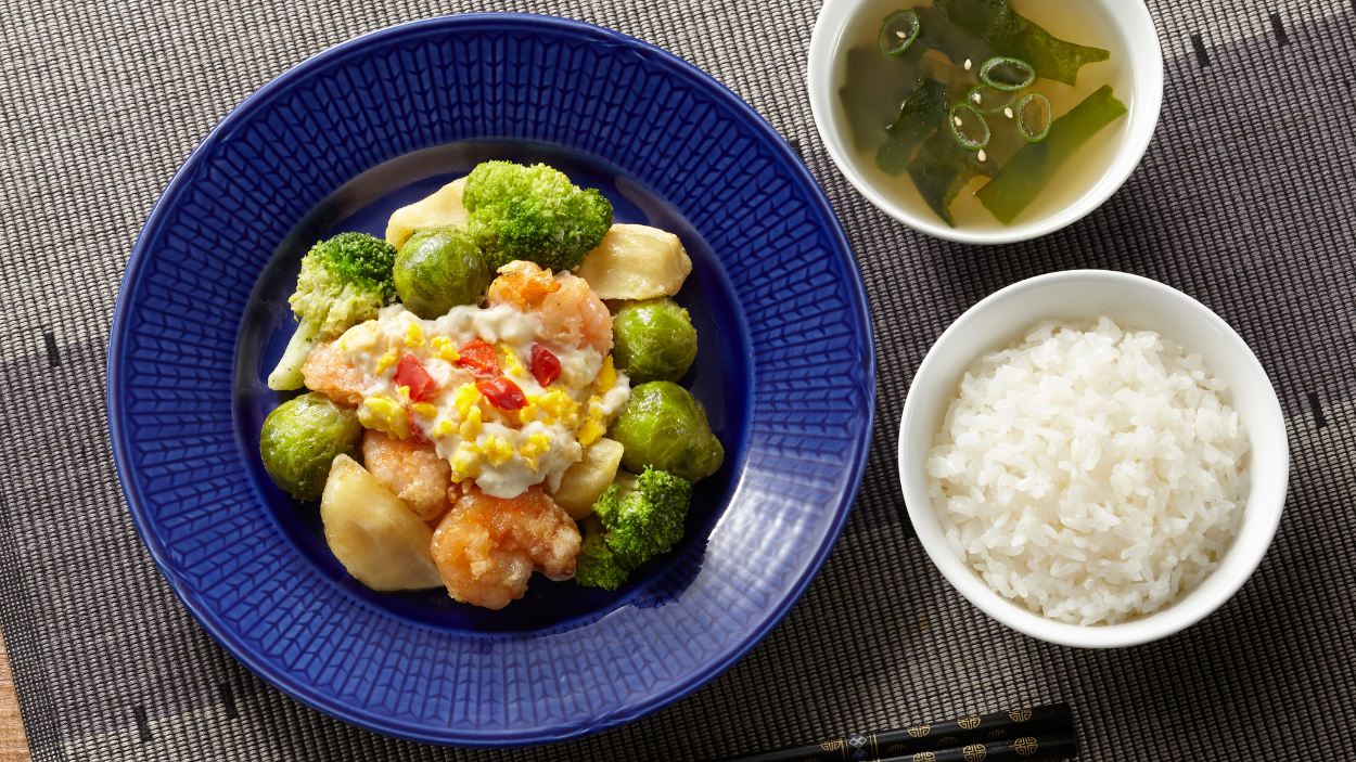 大ぶりのエビ のぷりっとした食感に、りんご酢のやさしい酸味をまとわせたオリジナルマヨソースで作るエビマヨはコク深く、後味はまろやかに仕上がっています♬