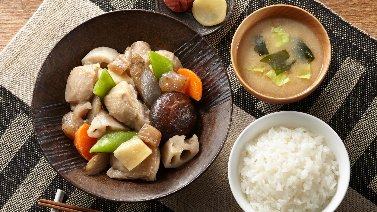 大きめにカットした鶏もも肉、ごぼう、人参、蓮根、たけのこ、しいたけが入った食べ応えのある筑前煮は、100年以上の歴史を誇る老舗旅館「加賀屋総料理長監修白だし」を使用してじっくりと煮込んでいます。
