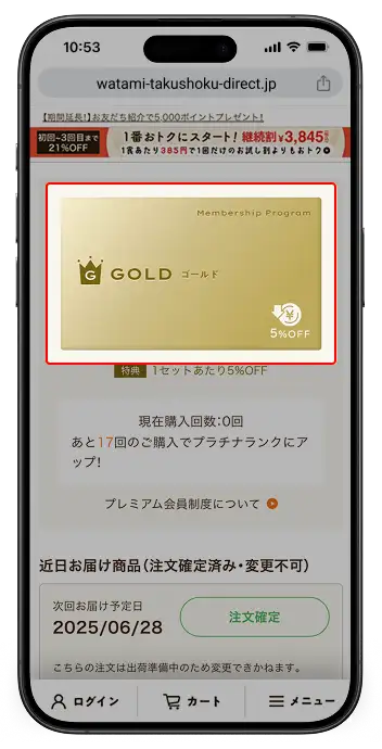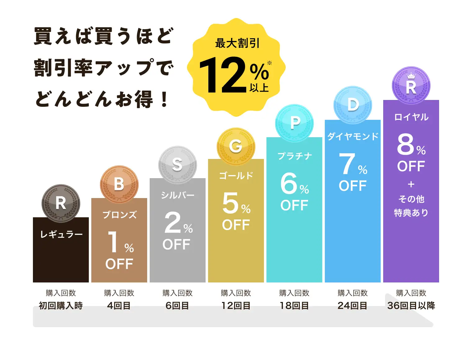 - 購入回数によってランクが更新されます。商品を変更してもランクは継続されます。