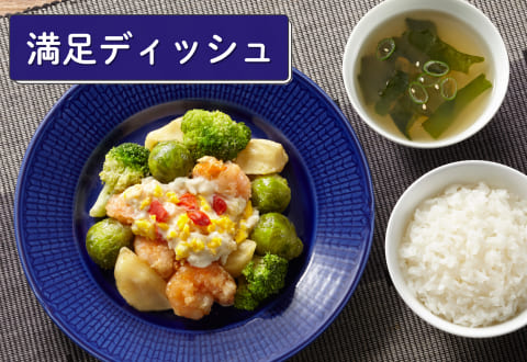 大ぶりのエビのぷりっとした食感に、りんご酢のやさしい酸味をまとわせたオリジナルマヨソースで作るエビマヨはコク深く、後味はまろやかに仕上がっています。にんにく香る芽キャベツとブロッコリーはじっくりグリルし、旨みを引き出しました。彩り豊かな花畑のような見た目と、奥行きある味わいが楽しめる贅沢なエビマヨです。