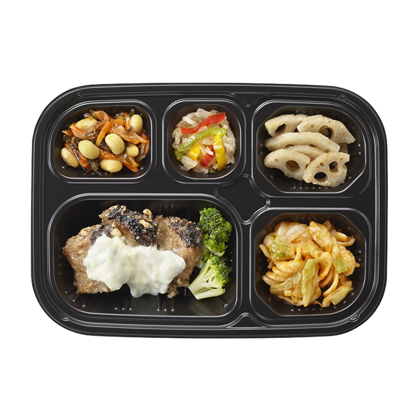 ※写真は1食分の献立例の盛り付けイメージです。お料理、惣菜容器以外のものは付属しておりません。/※品目数、熱量、食塩相当量は1食あたりの数値です。/※熱量、栄養素の補給につながる調味料の一部(油脂類、小麦粉などの粉類、砂糖、味噌など)は1品目として数えています。/※熱量の基準値は1セット平均で±50kcalの範囲としています。/※食塩相当量は1セット平均の計算値です。/※栄養成分値は献立作成時の計算値です。目安の数値としてお考えください。/※冷凍でお届けしますので、電子レンジで温めて召し上がってください。/※商品リニューアルに伴い、主菜名が同じでも、以前と内容が異なる場合がございます。/※魚に骨が入っている場合があります。骨にご注意ください。/※セット内容は、変更になる場合がございます。
