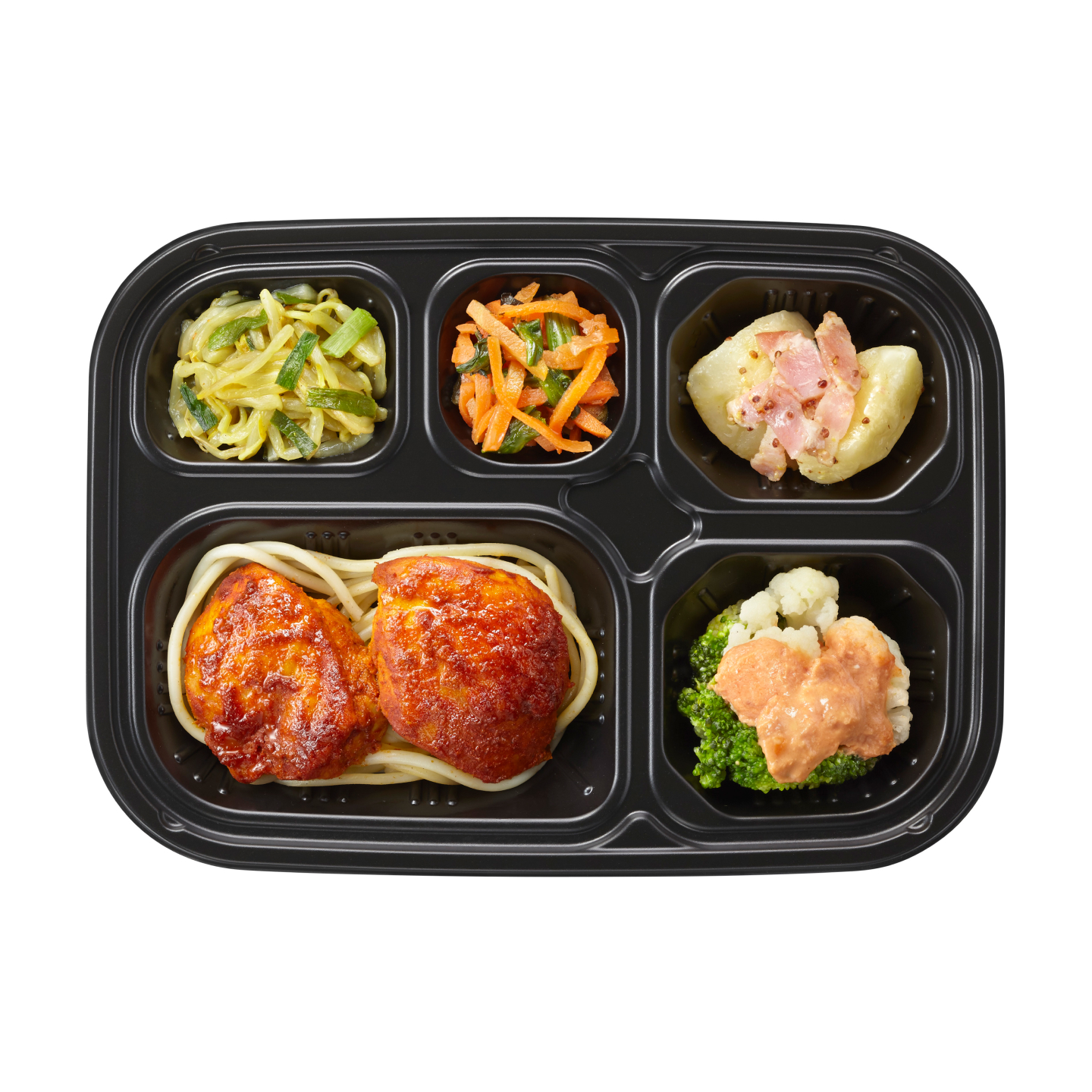 ※写真は1食分の献立例の盛り付けイメージです。お料理、惣菜容器以外のものは付属しておりません。/※品目数、熱量、食塩相当量は1食あたりの数値です。/※熱量、栄養素の補給につながる調味料の一部(油脂類、小麦粉などの粉類、砂糖、味噌など)は1品目として数えています。/※熱量の基準値は1セット平均で±50kcalの範囲としています。/※食塩相当量は1セット平均の計算値です。/※栄養成分値は献立作成時の計算値です。目安の数値としてお考えください。/※冷凍でお届けしますので、電子レンジで温めて召し上がってください。/※商品リニューアルに伴い、主菜名が同じでも、以前と内容が異なる場合がございます。/※魚に骨が入っている場合があります。骨にご注意ください。/※セット内容は、変更になる場合がございます。