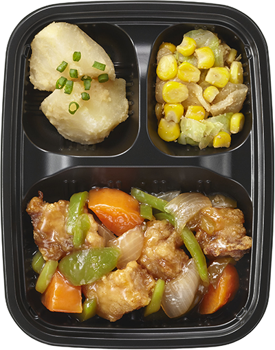 /images/categories/menu_apr_2026/3_10_sin/mix2-1.png,①酢豚(四元豚 ゆめの大地使用),じゃがいもの味噌煮/キャベツコーンのごまだれ,熱量:293kcal