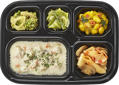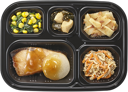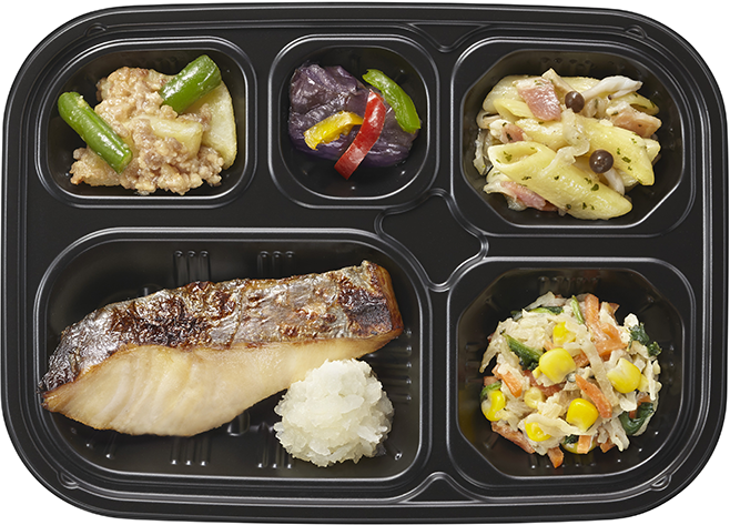 塩分やカロリーに配慮しつつも、1食で主菜と副菜4品の5種のおかずをお楽しみいただけます。