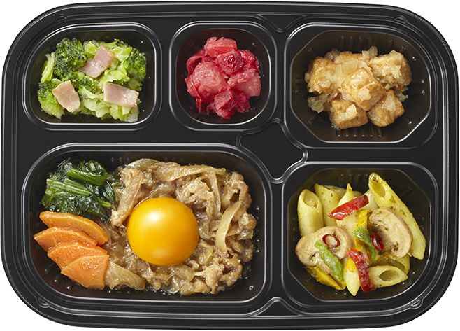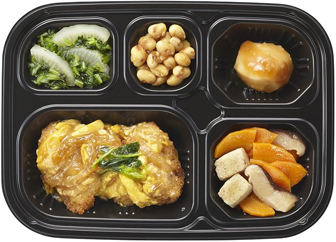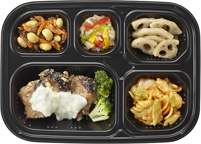 塩分やカロリーに配慮しつつも、主菜と副菜4品の5種のおかずが楽しめて、1食でしっかり満足できる内容になっています。
