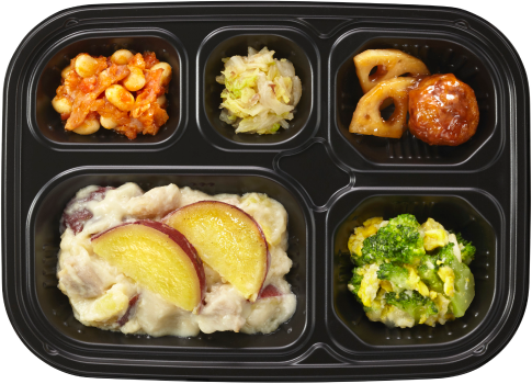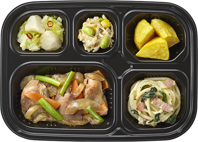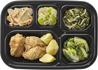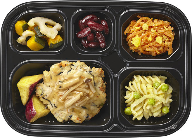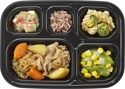 塩分やカロリーに配慮しつつも、主菜と副菜4品の5種のおかずが楽しめて、1食でしっかり満足できる内容になっています。